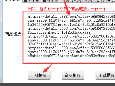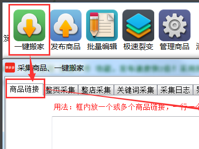 5、复制需要上传的到自己店铺的宝贝链接,将该链接粘贴到商品链接框中,然后点击一键搬家。