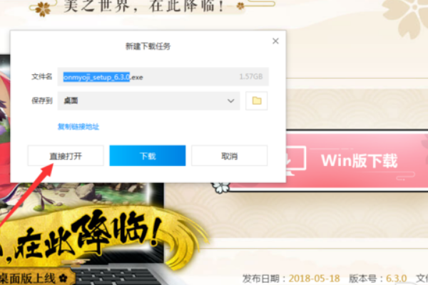4、跳转页面,点击直接打开,即开始下载。适用于WIN7/8/10的系统。
