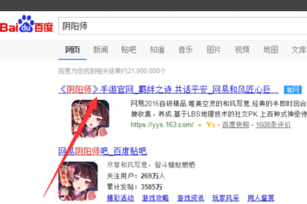 1、打开电脑,百度搜索阴阳师。