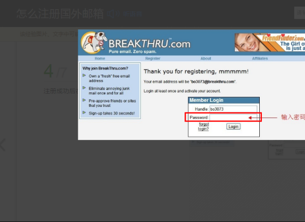 4、接着注册成功后,就在如图所示的地方输入设置刚刚注册的邮箱密码,注意不要输错