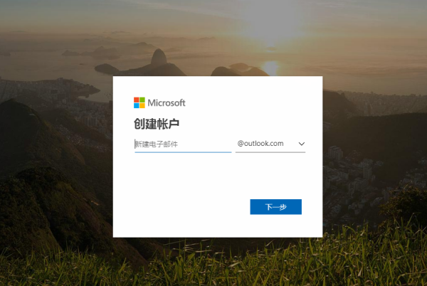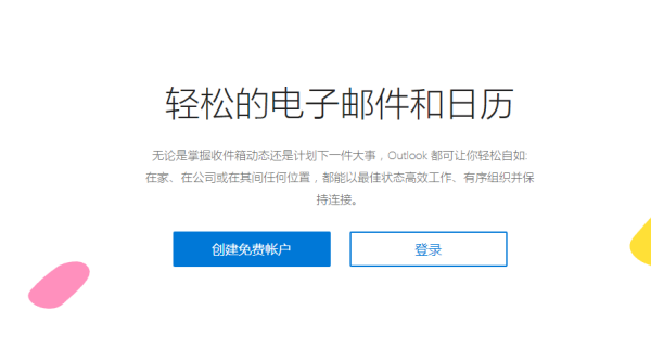 2、在出现的outlook官网页面中,点击【创建免费账户】。