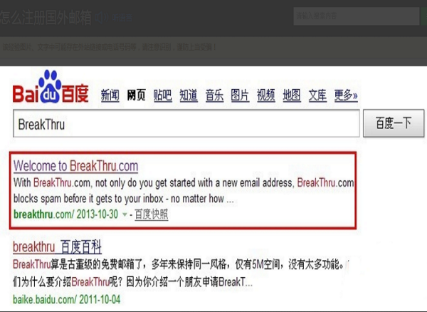 1、这里以国外其中一个邮箱——BreakThru为例,首先百度出来BreakThru的官方网址。