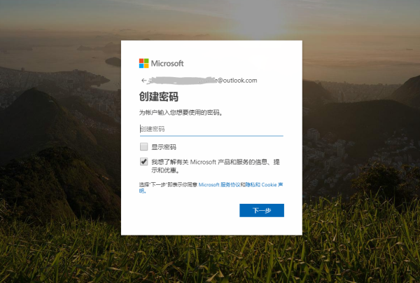 4、点击下一步,出现的新页面中,输入账户密码,点击下一步即可完成国外电子邮件的申请。