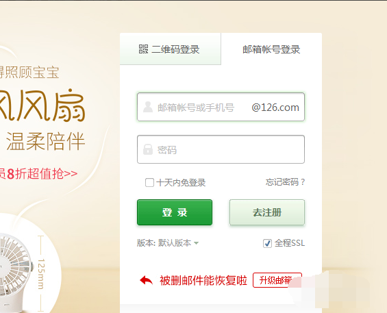 2、此时页面跳转以后进入到126邮箱的官方网站。可以看到起@以及后面的内容已经有了,输入前面的具体账号以后密码并点击登录按钮。