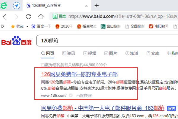 1、首先打开百度搜索,搜索126邮箱,然后进入126邮箱网页。