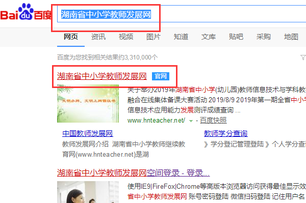 1、以湖南省为例,在百度上搜索湖南省中小学教师发展网,找到官网后点击打开。