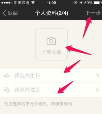 进行上传头像,设置性别,年龄。
