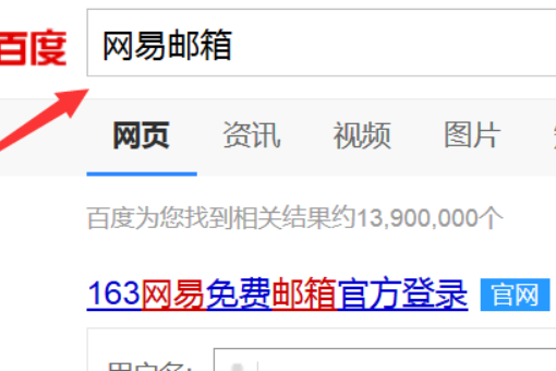 2、利用百度搜索输入网易邮箱,点击其官网链接进入。