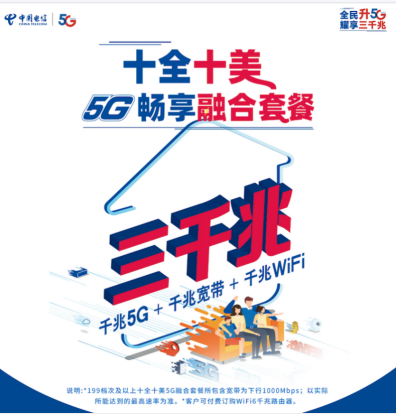 5G是第五代移动通信技术的简称,是4G网络的演进。5G与4G相比,最大的优势在于高速率、低时延、大容量等。中国电信正在5G应用创新方面开展广泛合作,目前已发展超过200家的试验客户和合作伙伴,聚焦政务、制造、交通、物流、教育、医疗、媒体、警务、旅游、环保等十大垂直行业的重点业务场景,开展了丰富的5G应用创新。更是推出了十全十美5G畅享融合套餐,畅享三千兆:千兆5G+千兆宽带+千兆WiFi。宽带升速:最高可享千兆网速;流量升档:最多可享300GB国内大流量;全屋WiFi升级:全屋WiFi上门定制。