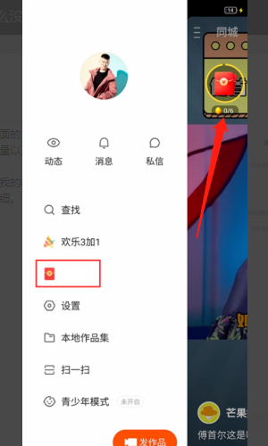 3、方法二:点击右上角的三道杠杠形状的标志,进入个人信息界面,找到红包形状的标志,并点击进入界面。