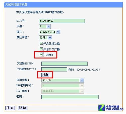 进行WDS拓展的两个无线路由器,它们的SSID可以相同,也可以不同。对于家庭用户来说,如果你希望你的手机、平板连接无线时,在这两个无线路由器的信号覆盖范围内能够实现无缝漫游的话,可以将SSID设为相同。但在下面的设置中,为了便于大家区分,我们采用了不同的SSID,无线路由器B的SSID为“zol-WDS-02”。