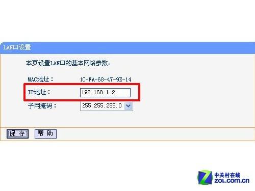 3、把副路由器的LAN地址设置为192.168.1.2防止与主路由器冲突,同时也便于管理主和副路由器。