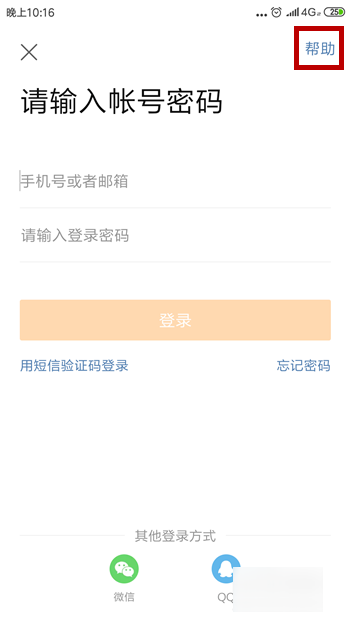 2、在账号密码登录的右上角找到【帮助】选项并点击。
