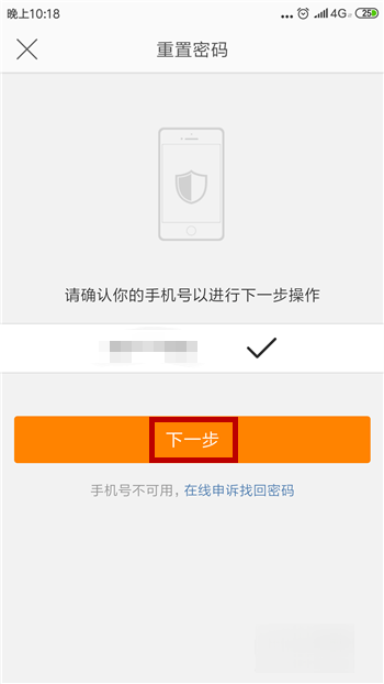 7、然后就需要确认是否使用之前的手机号进行操作,如果手机号还在使用那就好办了,直接点击【下一步】然后使用短信验证登录,如果手机号不在用了就比较麻烦需要进行申诉,点击【在线申诉找回密码】。