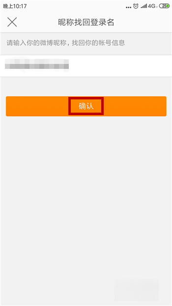4、接下来就是输入我们的昵称来找回账号信息,输入后点击【确认】。