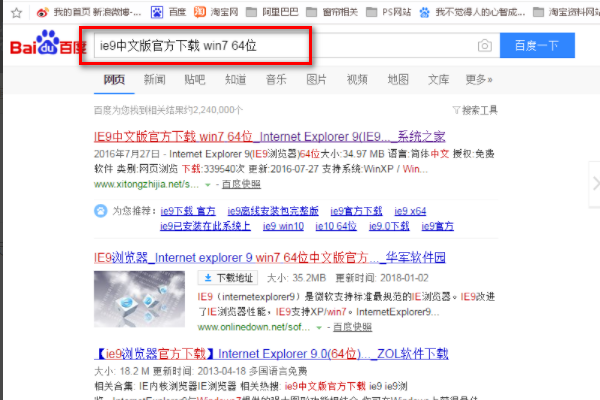 5、既然不是我们需要的IE9,那么就需要在网络上下载IE9版本,在百度搜索一下就很容易找到。