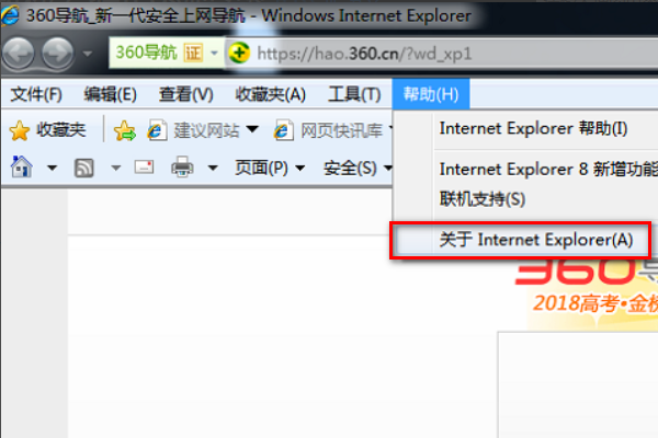 3、然后我们点击界面上方【帮助】,再点击【关于Internet Explorer】。