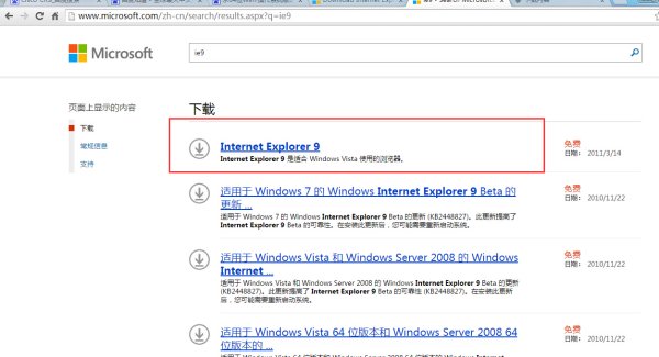 1、官方的地址为http://www.microsoft.com/zh-cn/download/internet-explorer-9-details.aspx