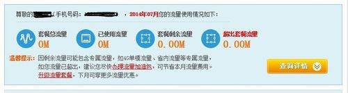 4、在下拉页面中你会找到你查询的内容,按旁边的详情查询还可以查询之前的流量套餐使用情况。