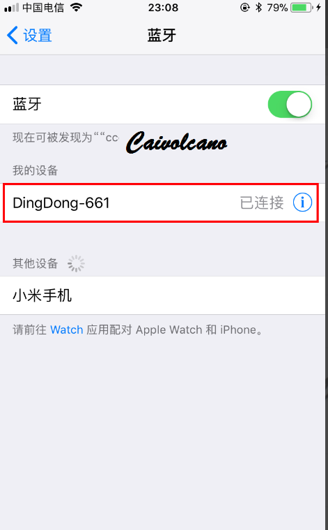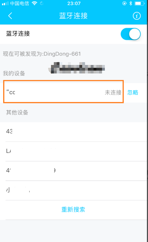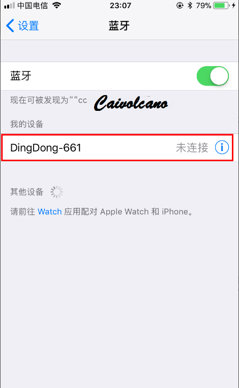 4、打开后就能查找到叮咚的蓝牙名称。显示未连接状态。