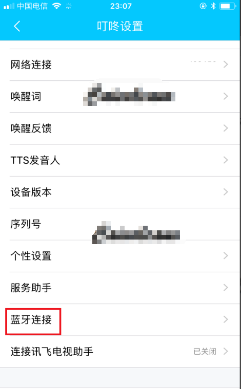 2、点击“叮咚设置”后,进入到设置页面。在设置页面有一个蓝牙连接。