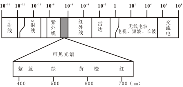 自然界中各类辐射源的电磁波谱是相当丰富、相当宽阔的,与光电子成像技术直接有关的是其中的X线,紫外线,可见光线,红外线和微波等电磁波谱,它们的特征参量是波长λ、频率f和光子能量E。