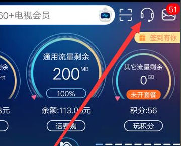 2、进入掌厅首页后,点击右上角的耳机图标。