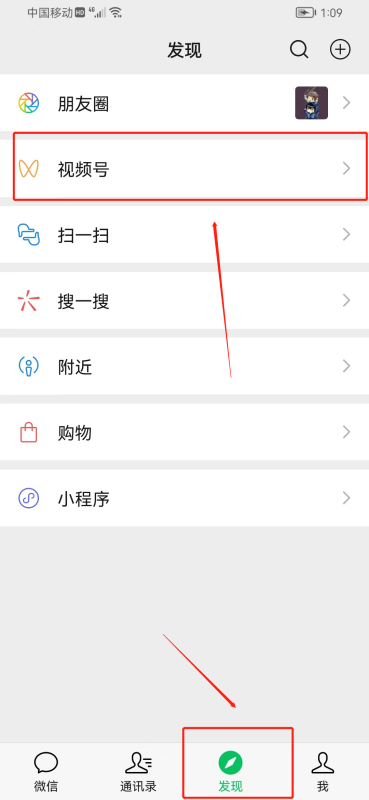 1、打开手机微信,点击下面的【发现】,在这个页面点击【视频号】;