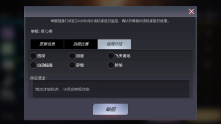 最好不举报!你举报后系统将在12小时内查证,一旦对方在查证是没违规~~那么受罚的将是你!CF举报只是个过场罢了。穿越火线怎么举报用外挂的