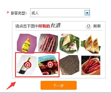 5、旅客类型根据实际情况选择.正确选择验证码图片,单击下一步.