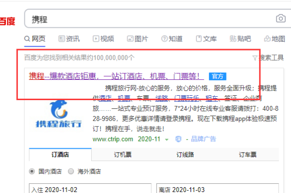1、在电脑的百度上输入携程,找到其官方网站以后点击进入。