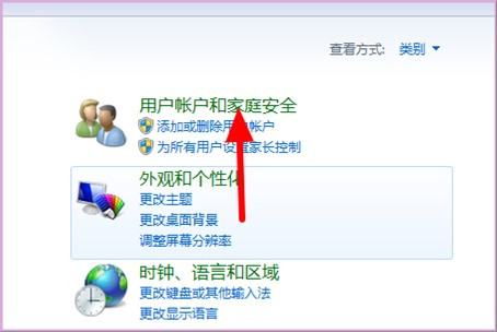 2、其次,完成上述步骤后,单击以在弹出的窗口中打开“用户帐户和家庭安全”选项,如下图所示,然后进入下一步。
