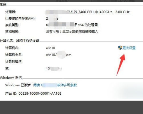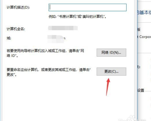2、在弹出的对话框中选择更改设置,然后在弹出的系统属性对话框中点击更改设置,如图所示。