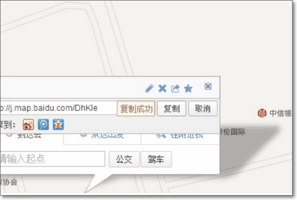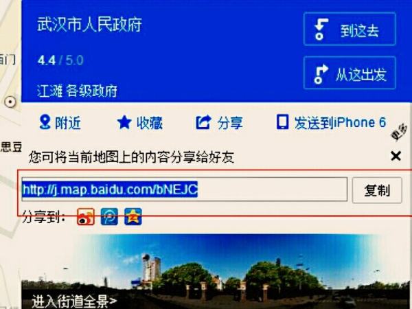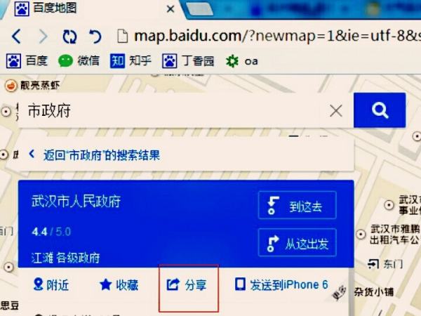3、如下图,标记地点,并“分享”复制网页,