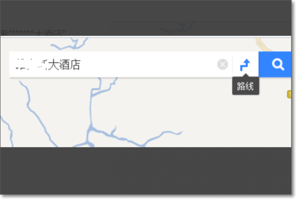 1、地图页面搜索地点,如搜索“******大酒店”,