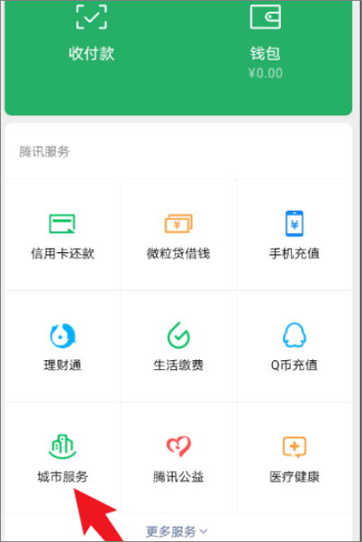 2、在腾讯服务页面中,找到城市服务,点击进入城市服务页面;