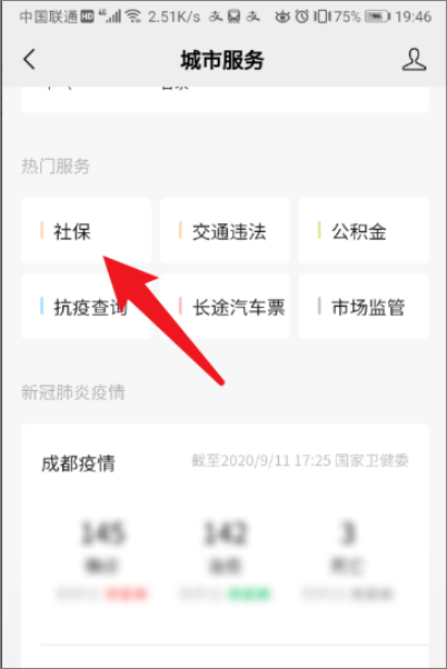 3、在热门服务页面中,找到社保,点击进入社保服务页面;