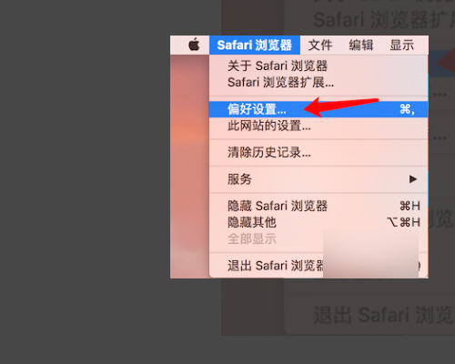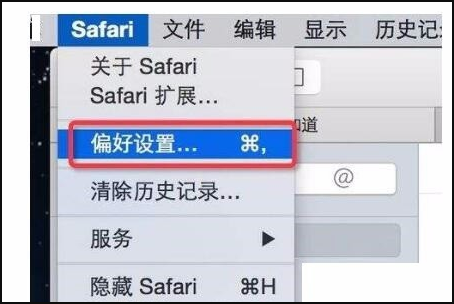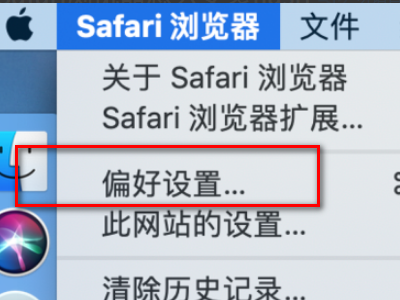 2、然后打开浏览器,点击Safari浏览器-点击打开偏好设置。