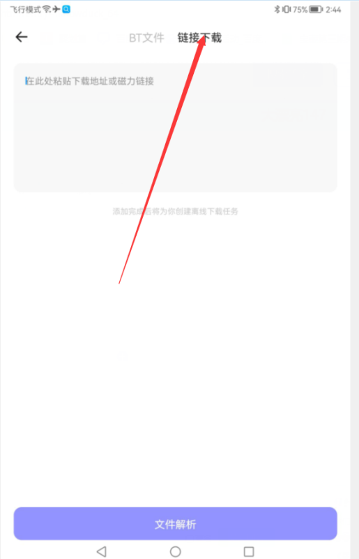 6、然后将磁力链接粘贴在磁力链接粘贴处,最后再选择文件解析,解析成功即可开始下载,如下图所示: