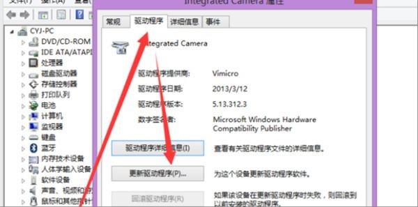 5、随后,完成上述步骤后,在“Integrated Camera”属性中打开“更新驱动程序”选项,如下图所示,然后进入下一步。