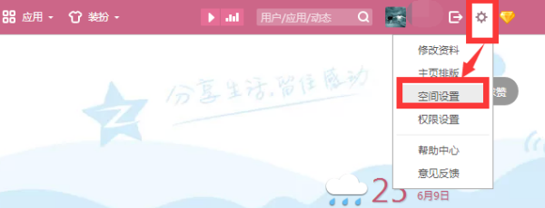 点击右上角的齿轮按钮,再点击“空间设置”;