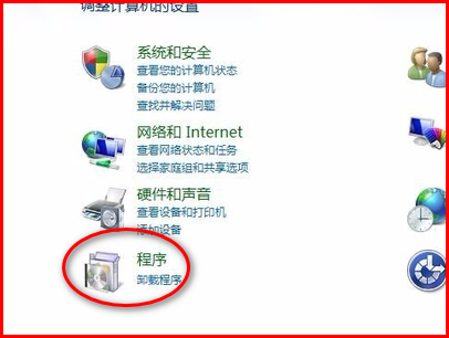 2、接着这时候就会可以弹出控制面板窗口界面,然后再进行点击“程序”。