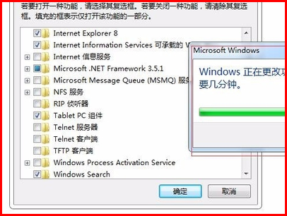4、接着就是要进行点击打开Windows功能开始安装更改功能程序,然后就是要进行等待几分钟出现“Windows已完成请求的更改”,然后就是要进行重新启动电脑。