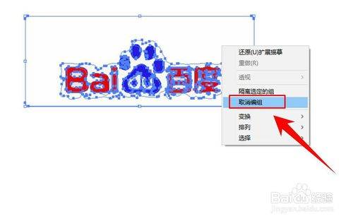 点击拓展后,会显示出很多的描点,选中logo,点击鼠标右键,在右键菜单中选择【取消编组】。完成取消编组后,点击图片上多余的色块,将其删除,只保留你需要的部分。