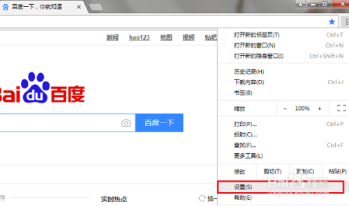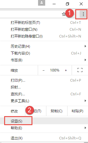 第一步在我们的电脑上打开chrome,点击右上方的列表图标,选择设置,如下图所示: