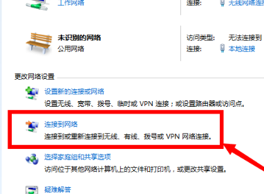3、在“网络和共享中心”面板里,找到“更改网络设置”一栏,点击“连接到网络”按钮。