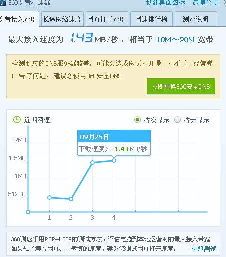 3、测试完成后会显示宽带属于哪个区间,介于1M---2M之间的是10M宽带,即可: