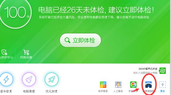 1、打开360卫士,找到右下角的“测网速”并点击,打开;