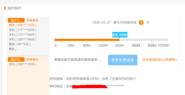 您好,安徽电信用户可以直接登录电信网上营业厅查询自己的宽带速率的,用户打开安徽电信网上营业厅 www.ah.189.cn ,登录自己的宽带帐号,登录后会跳转到个人中心,然后用户下滑页面即可查看到自己的宽带速率以及装机地址等信息了。