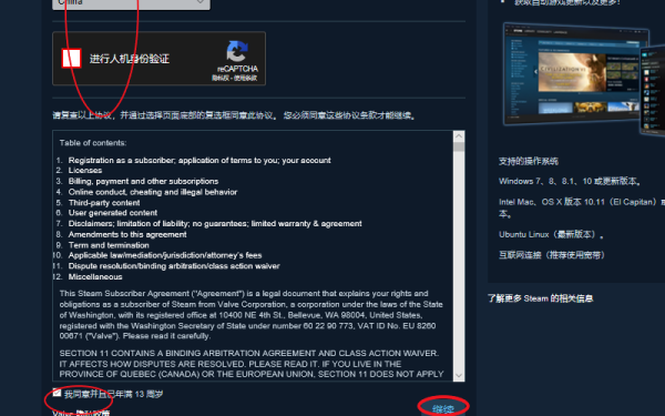 3、这时就进入到了账号注册页面了,在页面上输入自己的邮件地址,居住地选择UnitedStates(美国),然后进行人机身份验证(选取所需匹配的图片)。输入完成后勾选页面下方的复选框,然后点击【继续】。